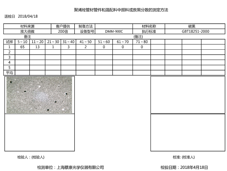 1、聚烯烴管材、管件和混配料中顏料或炭黑分散的檢定顯微圖像分析