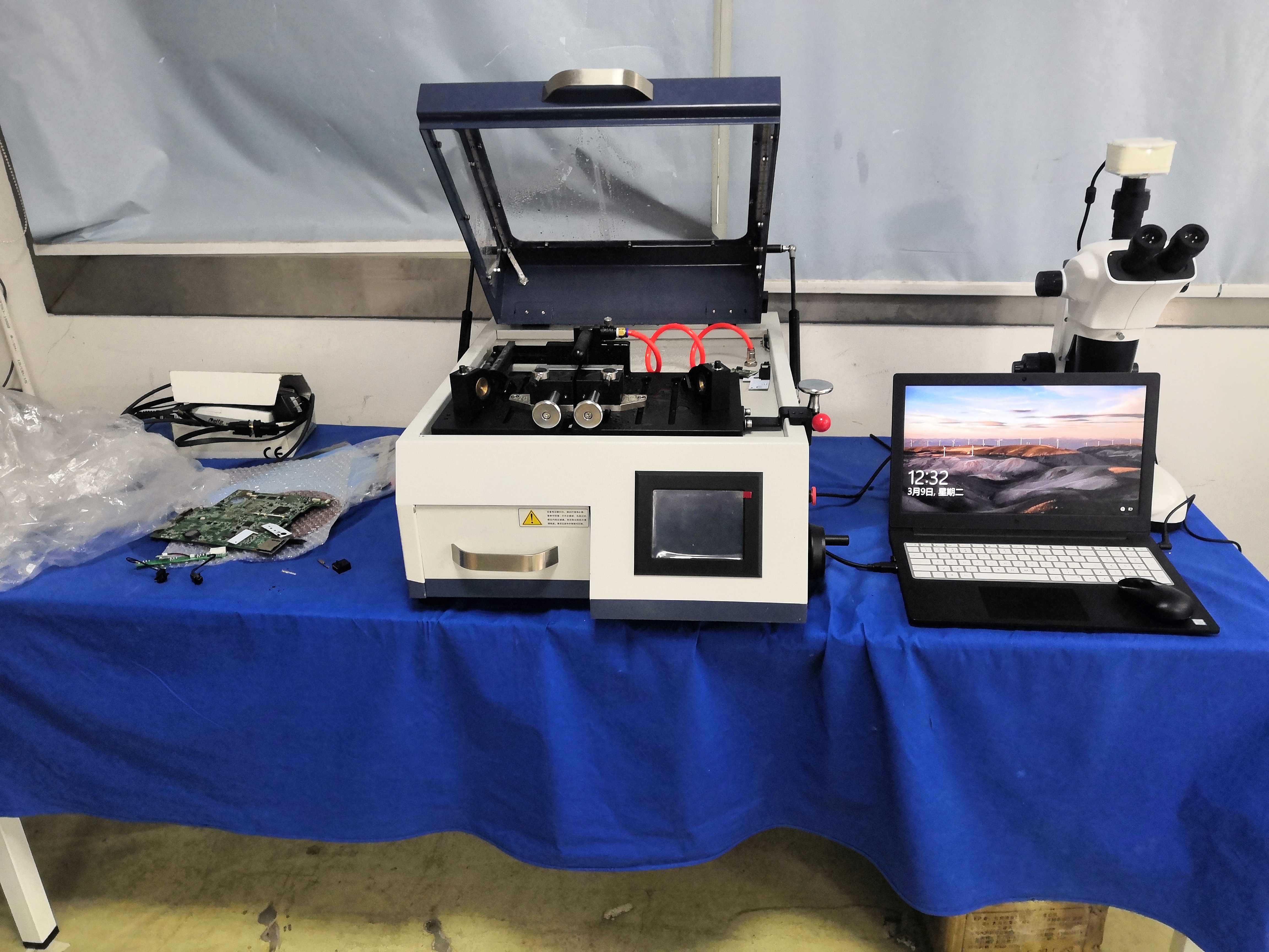 上海奧申檢測(cè)科技有限公司立體顯微鏡ZOOM-900C, 精密切割機(jī)PCBQG-3安裝調(diào)試現(xiàn)場(chǎng)。